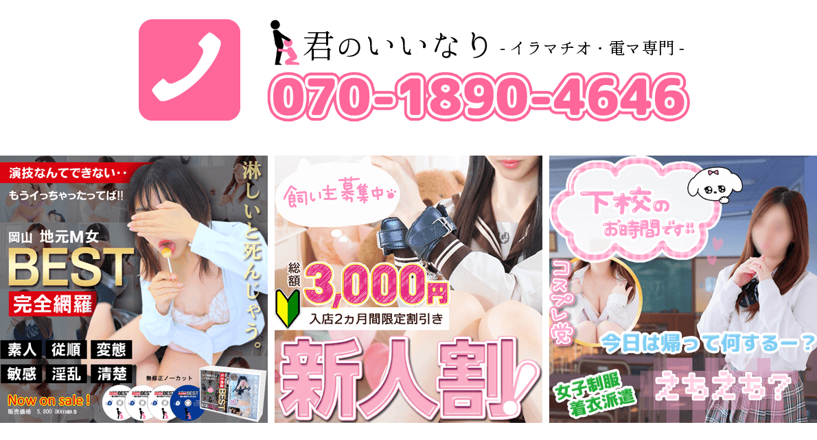 君のいいなり岡山店は、イラマチオ・電マ・M女の専門店になります!